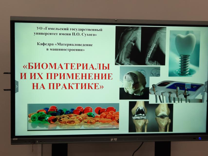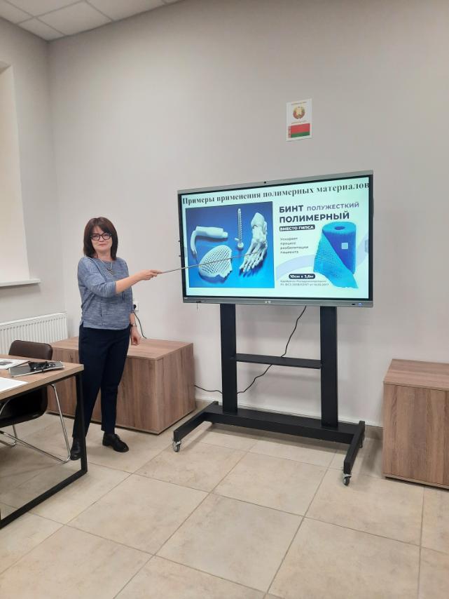Кадолич Ж.В. рассказала прибывшим на встречу школьникам о специфике свойств, предъявляемых к биоматериалам, погрузила в мир многообразия таких материалов, привела примеры непрофессионального выбора материалов при разработке изделий медицинской техники...